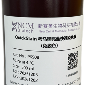 QuickStain 考马斯亮蓝快速染色液是一种即用型考马斯亮蓝(Coomassie)蛋白染色液,适用于 SDS-PAGE 及