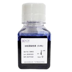 4、台盼蓝有潜在的致癌风险,操作时请穿实验服并戴一次性手套,以避免直接接触人体或吸入体内;